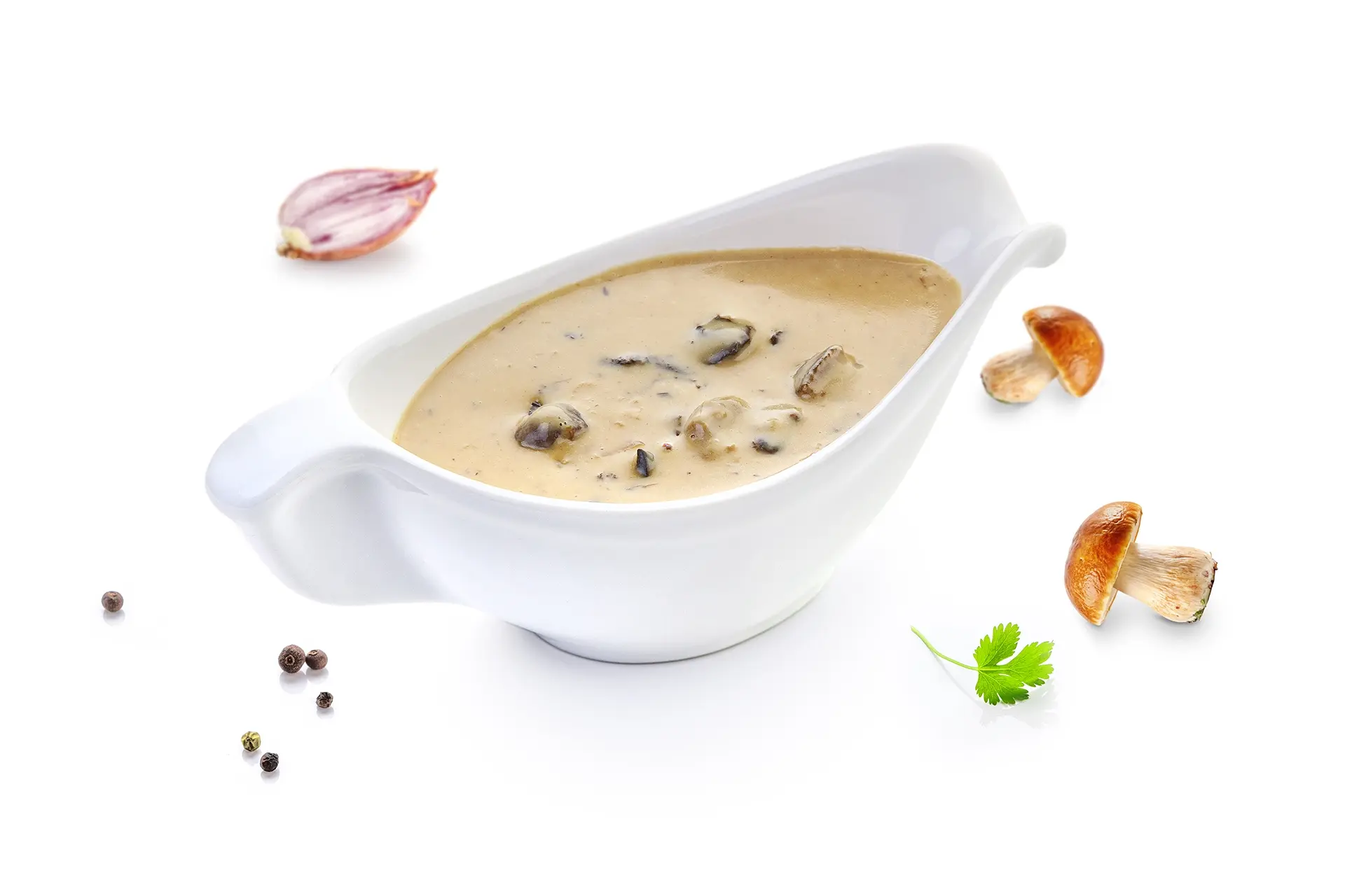 Creamy sauce with cep mushroom cooked with shallots and onions.