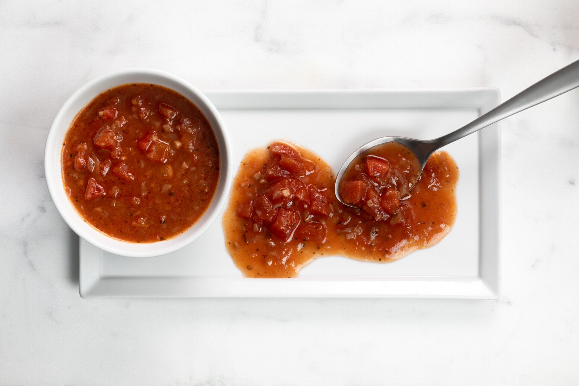 Item #3708Smoky and flavorful, this versatile sauce, featuring tomatoes, shallots, and red wine, can be served hot or cold.